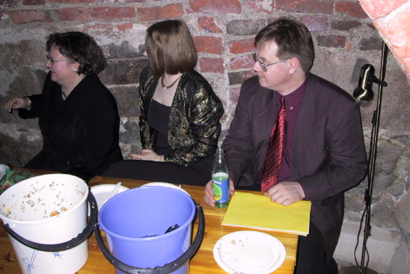 ... och gästerna lyssnar. Från vänster Tero Ykspetäjä (Spin-tidningens långvariga chefredaktör under 1990-talet).