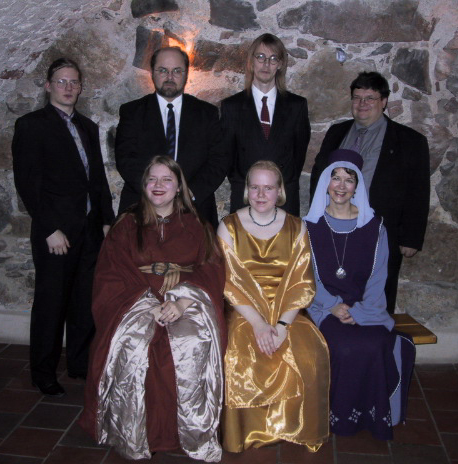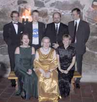 Föreningens sekreterare som var med: (undre raden fr. v.) Johanna Ahonen (nuvarande sekreterare), Tytti Paananen och Leila Paanen; (övre raden fr. v.): Ben Roimola (sekr.1987-1988, 1990, 1993-1994), Esa Riihonen (sekr. -1986), Hannu Pajunen och Jarmo Mäenpää.