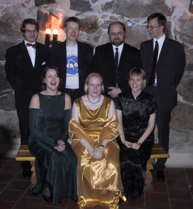 Föreningens orförande som var med på jubileumsfesten: (undre raden fr. v.) Petra Suntila, Tytti Paananen och Jaana Gustafsson (ordf. 1978-1979); (övre raden fr. v.) Simo Suntila (nuvarande ordf.), Hannu Pajunen, Sami Nurmela och Pekka Hernejärvi (ordf. 1980-1985).