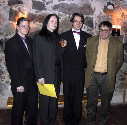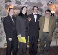 Spin-tidningens chefredaktörer på plats var (fr. v.): Simo Suntila (2/1997->), Tero Ykspetäjä (1/1993-1/1997), Ben Roimola 3/1988-4/1989, 3/1990-4/1992) och Kari Mäentaka (2/1980-4/1983).