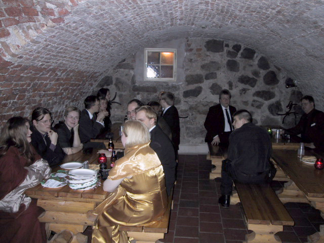 Efter supén på slottet fortsatte festen i källaren i Åbo gamla rådhus.