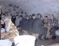 Matserveringen i källaren var kanske inte lika stilig som i slottet, men god var den och åtgången var stor.