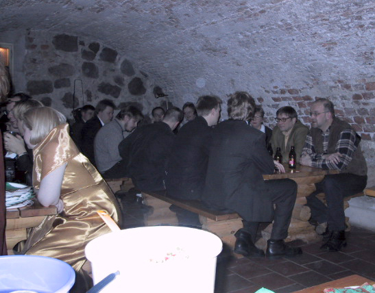 Den välvda källaren var en perfekt lokal för festens fortsättning.